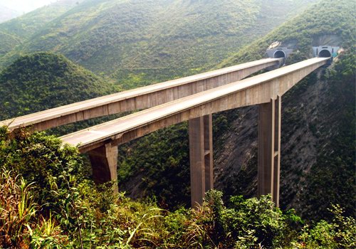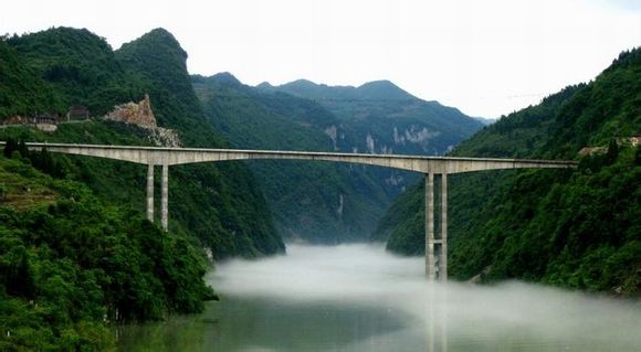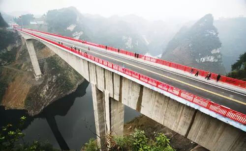六广河大桥:位于贵州省贵毕高等级公路。2001年9月建成。桥长564.2米,桥面距水面高差达300余米。