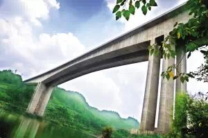 贵阳小关水库特大桥全桥长1043.3米,主跨梁体采用160米大跨度连续钢构,70米以上的高墩有3个,其中3号墩高达100米,居全国之首,预应力混凝土连续刚构边跨先浇段支架高度为88米,居全国同类工程之最。