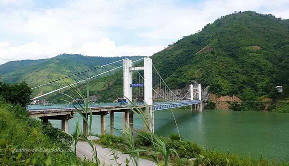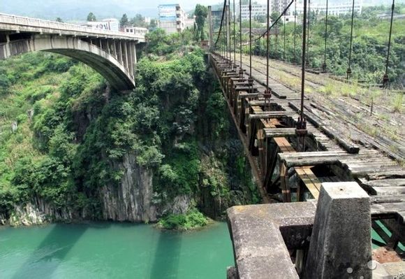 单孔120米加劲钢桁架悬索桥,1958年建成。大桥飞跨深谷,两岸绝壁悬崖,桥面高出河面68米。