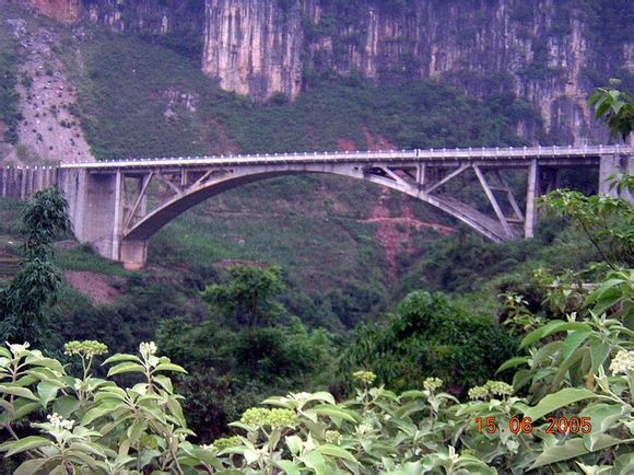赵家渡大桥,位于贵州兴义至天生桥公路K13赵家渡峡谷,主跨为100m的预应力砼桁式组合拱桥。
