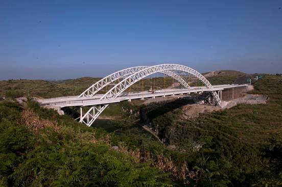 1956年建成,总长319.1米,最大跨径44米,桥面净宽7米,桥高45米。