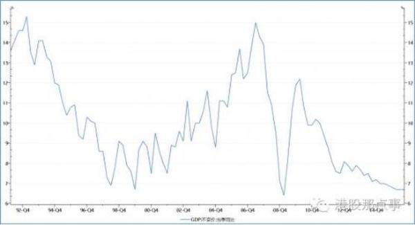 (中国自2007年以来每况愈下的GDP增速)