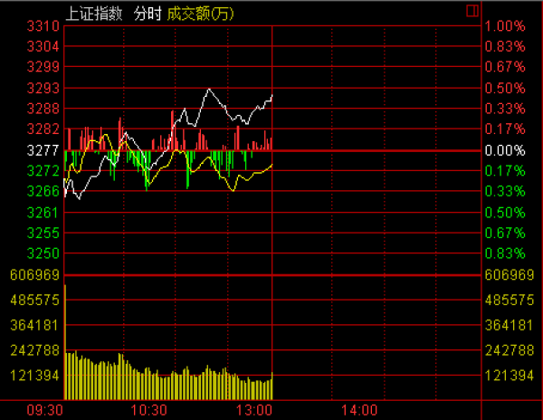 截至午盘,沪指报3291.66点,涨0.45%,成交1733.5亿。深成指报11107.85点,涨0.35%,成交1806.4亿。创业板报2174.84点,涨0.41%,成交465亿。