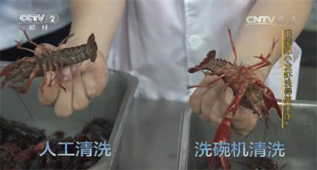 随后,用小龙虾对洗碗机进行了极限洗涤测试,挑选了美味但难洗净的小龙虾分为人机两组进行清洗pk,使用机洗的“预冲洗”程序,机洗比手洗的更干净,而且小龙虾也更有活力。