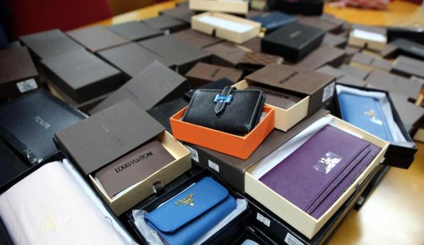 无论天猫,京东,亚马逊还是以前互相指责卖假货的聚美优品和乐蜂网,几乎所有的电商平台都不可避免的存在假货问题。图为2014年8月4日,深圳市罗湖市场监管分局日前查获了一批假冒名牌小包,其中货主还提供造假的代购发票、POS机签单等等。