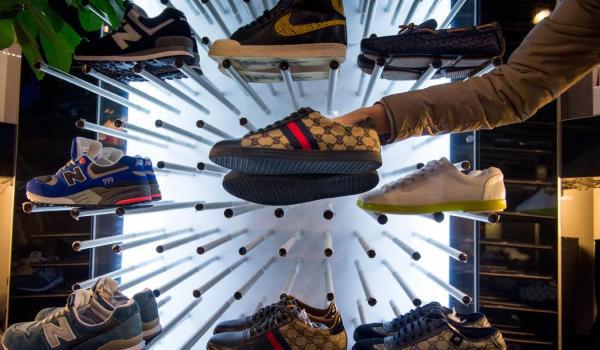图为2013年11月20日,成都,香槟广场的这家A货店内摆满了奢侈品牌皮鞋,一双只卖几百元。