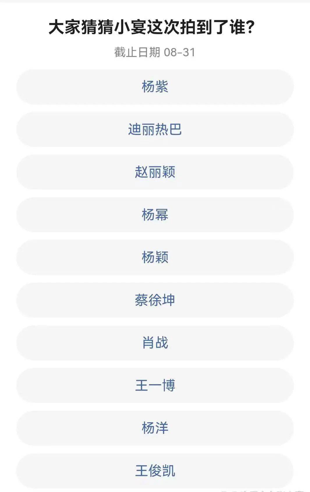 之前爆料预告给出十位顶流的名单,分别是杨紫、杨幂、杨颖、杨洋、迪丽热巴、赵丽颖、蔡徐坤、肖战、王一博、王俊凯等。