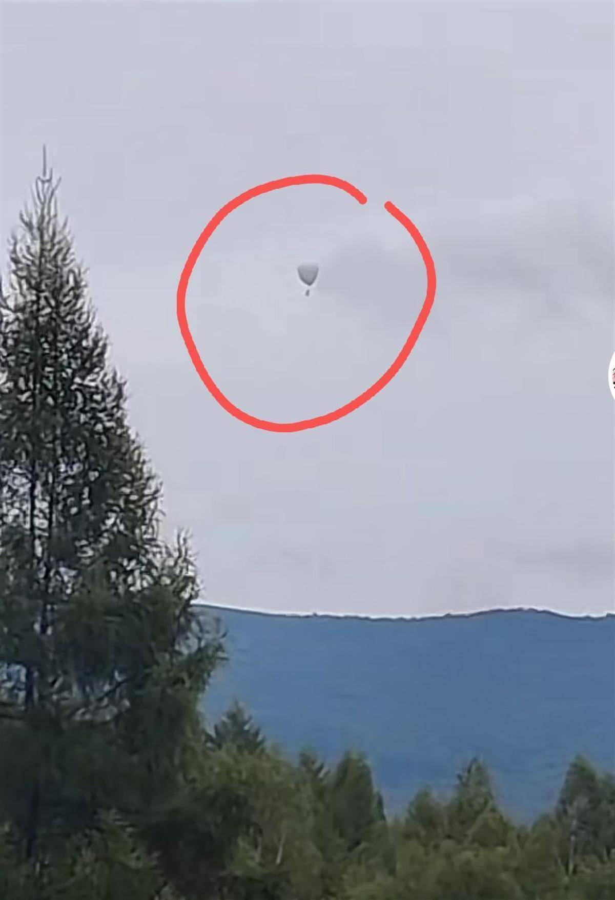 工人乘坐氢气球摘松塔不慎飘走(视频截图)