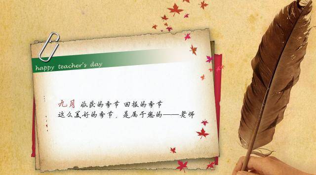 4、白色粉笔末,一阵阵飘落;淳淳教导,一声声深刻;从无知角落,推向智慧宝座;从幼稚小河,导成浩瀚大河,这都是你的杰作,祝老师教师节快乐!