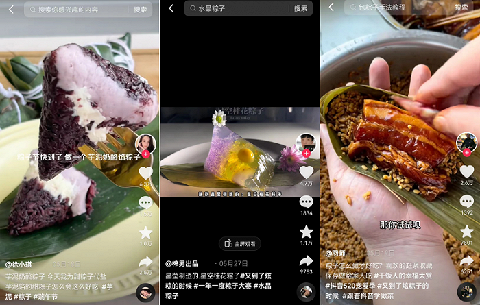 近几年端午节,各大新媒体平台上热卖的粽子种类在不断变化,还有网友自发设计的香芋芝士粽、桂花水晶粽、西米紫薯粽等多种创意粽子。元宵节时,传统汤圆的点赞评并不好看,但有网友分享出的炸元宵、冰汤圆、豆面汤圆、烤汤圆等却备受推崇。