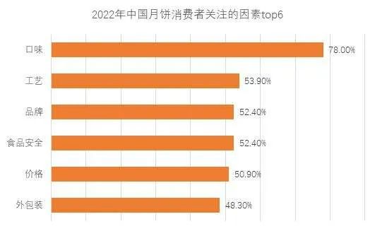 国家统计局数据表明,近年来消费者口味逐渐多元化,新型口味能够很快获得较高的市场接受程度,并有占比逐渐提升的趋势。目前水果口味、新型口味、拥有漫长口味积累的传统口味,在月饼市场上形成了三足鼎立的态势。消费者中,有78%的购买者在选购月饼时,更关注月饼的口味。