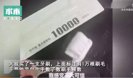 报道:大叔买了一支牙刷,上面标注有1万根刷毛,于是他亲自上手数了数刷毛根数,视频中的大叔剪了一方格的牙刷毛,数了一下发现有500根毛,这根牙刷上总共有20个方格,所以正好是一万根刷毛,大叔数完后不禁感叹,果然中国人不骗中国人。