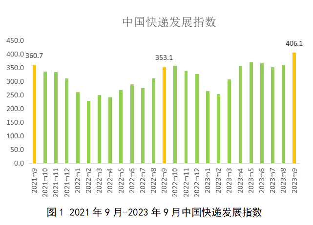 国家邮政局:9月中国快递发展指数为406.1 同比提升15%