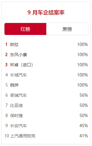 5家车企实现100%结案 环比略显逊色