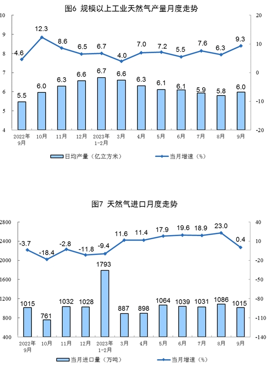 1—9月份,生产天然气1704亿立方米,同比增长6.4%。进口天然气8777万吨,同比增长8.2%。