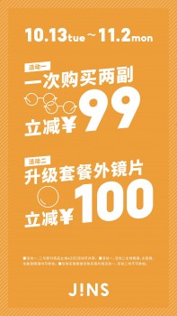 JINS睛姿秋日特惠 时尚眼镜立减多重优惠