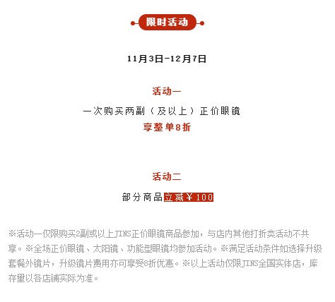 时尚眼镜JINS睛姿这次的优惠分为两种,