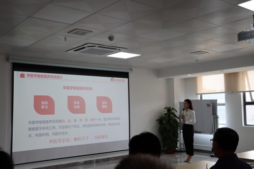 嘉宾们聆听华医学智能医养系统讲解。