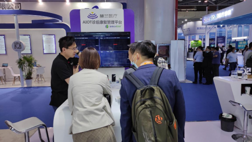 工作人员介绍慧兰医疗AIOT诊后康复管理平台