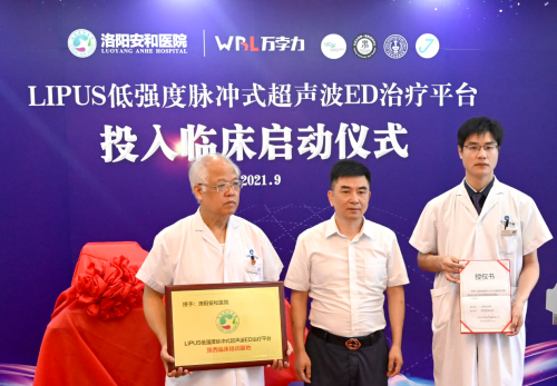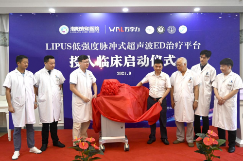 2021年9月17日,洛阳安和医院泌尿外科在洛阳首批引进了国家级创新科技——LIPUS低强度脉冲式超声波勃起功能障碍治疗系统,并被厂家北京万孛力有限公司授予豫西临床培训基地。标志着这项由中美两国医学专家共同研发的新技术正式落户豫西地区,助力男性拨开ED迷雾,捍卫男性健康。