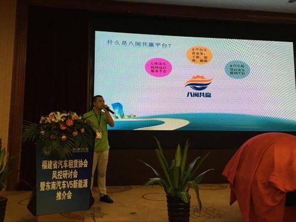 2016年8月18日,福建省汽车租赁协会风控研讨会暨东南新能源汽车推介会,在福建省福州市龙峰大酒店拉开帷幕。主题以促进会员共同利益为宗旨,履行自律、协调、服务职能,维护汽车租赁行业合法权益,维护行业市场秩序,促进汽车租赁行业的健康发展,以及东南汽车V5新能源产品推荐。