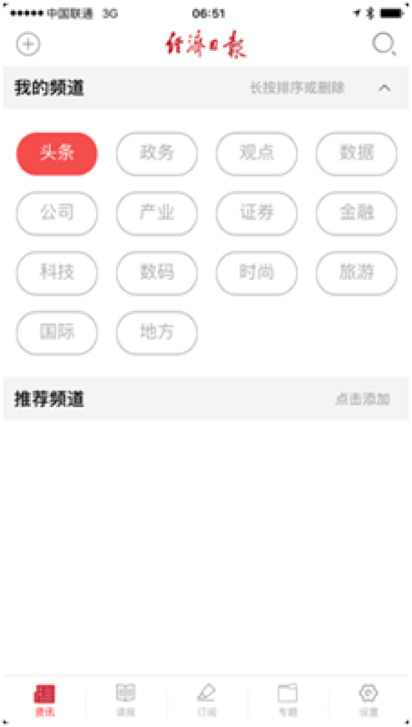 在资讯栏目,“经济日报”新闻客户端创新性地采用了“自定义”模式,用户可以在多个子频道中筛选自己关注的方向进行订阅,节省用户在海量信息中翻找有用资讯的时间。