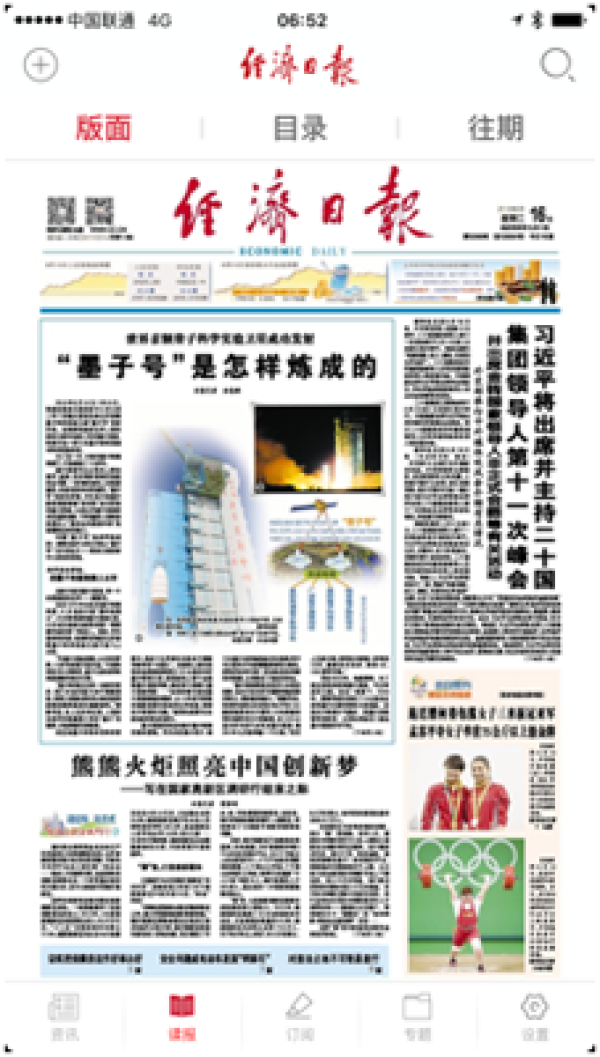 为兼顾传统阅读报纸用户的习惯及偏好,“经济日报”新闻客户端将报纸“搬运”至手机上,提供“掌上读报”新途径。