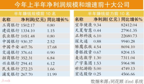 上半年,沪深两市有975家上市公司净利润达到或超过1亿元。盈利规模在百亿元以上的有19家公司。