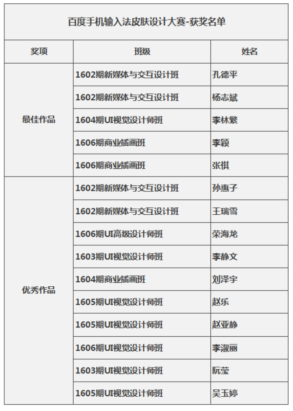 近日,由火星网校携手百度举办的“手机输入法皮肤设计大赛”圆满落幕,本次活动共涉及UI视觉设计、商业插画、新媒体交互三个专业,入围作品100余部,经百度MUX部门的严格评审,最终产生最佳作品5名,优秀作品10名。获奖学员将获得Apple Watch与数位板等实物奖励,以及由百度颁发的“百度输入法皮肤设计证书”。