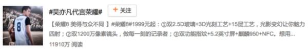 第一波线上宣布用悬念引发话题,有效利用粉丝效应,代言宣布之后,#吴亦凡代言荣耀##吴亦凡荣耀加身#两大话题阅读量超亿;