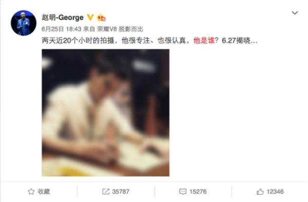 当时的情况是这样的,微博认证为荣耀业务部总裁的赵明-George在周六傍晚发布了一条疑似关于代言人的悬念微博,一小时转发过万。两天后,荣耀官微果然宣布了吴亦凡成为其代言人的消息,“我的每时每刻,由我自己定义”,一个小时转发就近3万。
