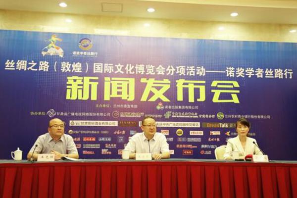 9月13日下午,由中共兰州市委宣传部和读者出版集团主办,由广东时代传媒有限公司协办的"首届丝绸之路(敦煌)国际文化博览会分项活动--诺奖学者丝路行"新闻发布会暨"诺奖学者丝路行"系列子活动启动仪式在兰州市宁卧庄宾馆隆重举行。兰州市委宣传部常务副部长朱建军、读者出版传媒股份有限公司总经理助理王光辉先生、温亚莉女士以及众多媒体参加了会议。