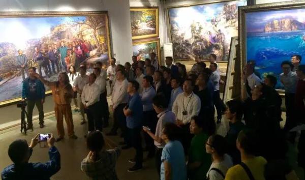 曹勇大师和北京798艺术管委会主任桑小为向西藏拉萨党政代表团介绍《重返梁家河》的创作和艺术的时代使命