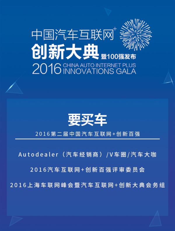 要买车荣获“2016中国汽车互联网+创新百强”