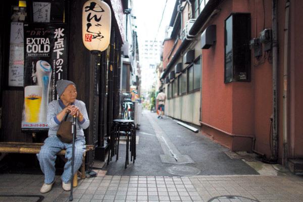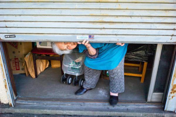 最近刊登在《东京时报》的一组照片中,摄影师查普曼用相机记录下了东京街头这些仍在工作的老人们。这些白发老人拄着拐杖同年轻人一样穿梭在上下班的路途中,与世人眼中那座灯红酒绿、科技发达到处充斥着朝气的东京形成鲜明对比。
