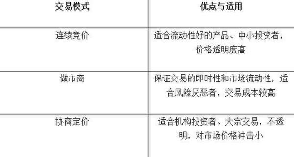 表一:主要交易模式优点