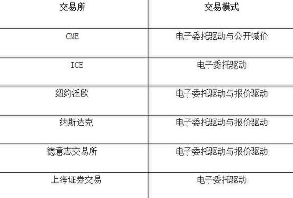 表二:全球主要交易所交易模式