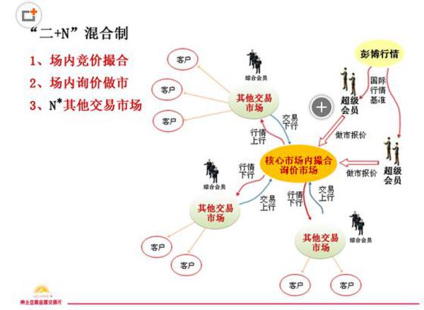 二是因为相对于成熟的上期所和上金所,新兴的贵金属交易所面临着如何吸引投资者,创造流动性的问题,纯竞价模式对于24小时交易的贵金属品种而言,更容易出现类似上金所在某些时段流动性不足,甚至被操纵价格的问题,这就需要有询价交易提供必需的流动性。"混合制"可以以中央撮合系统为主,并引入询价交易模式来活跃流动性,并允许多个交易所之间的委托进行撮合。这种方法可以极大的拓宽交易容量,降低会员风险,同时利用多种模式来实现会员的不同业务需求。