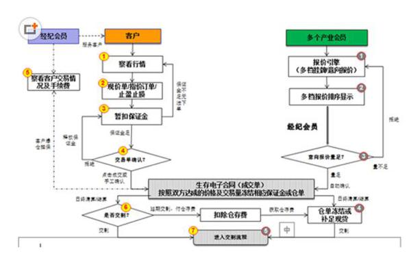 1、综合会员将场内价格报给客户,客户与综合会员做对手交易