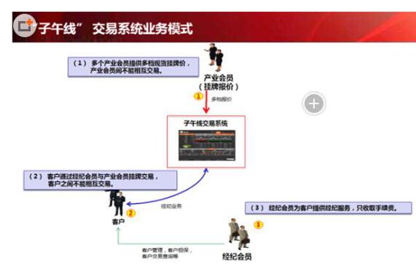 而交易所的"现货挂牌,单向竞价"交易模式提供了多家产业会员进行挂牌报价,挂牌价格按"价格优先、时间优先"的顺序排列,任何一个客户都会与其中的一家产业会员的挂牌报价成交,而不是只与一家做对手交易,因此不属于做市商。
