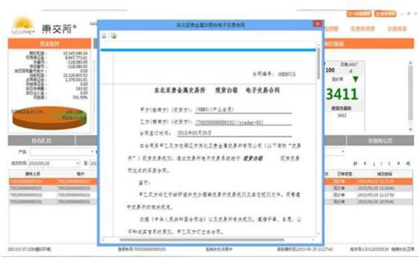 交易所的"现货挂牌,单向竞价"交易模式提供了在成交后在客户交易端显示交易对手,并生成了一份与交易对手的电子合同,通过电子合同,客户知道交易对手方信息,和双方的权利责任。因此不属于匿名交易。见下图六、图七。