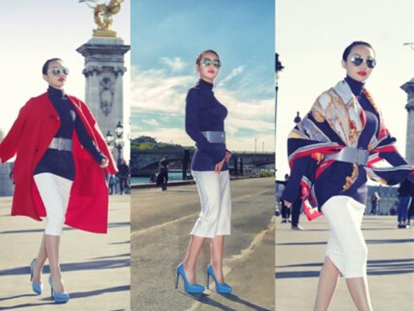 而脱掉红色上衣后,则体现职场休闲、知性的气场。洽谈结束后,披上印有浪漫图腾围巾,适合进行私人约会。朱红兰用一身打扮,轻松演绎三种气场的切换。