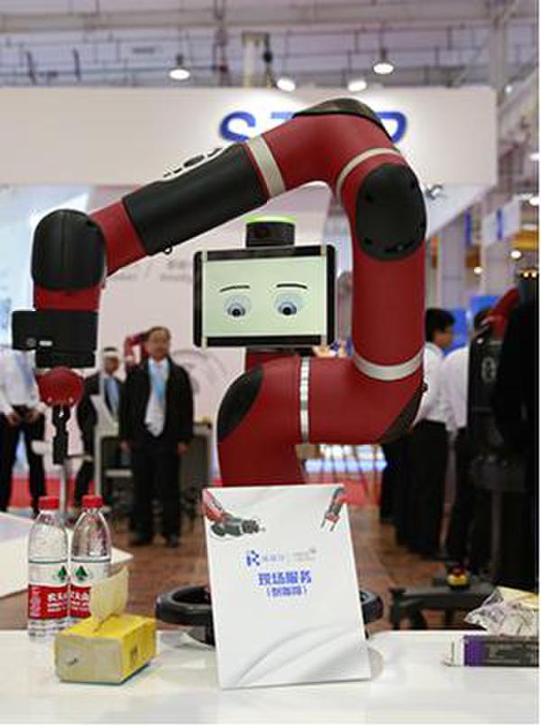 这款拥有两个中国红手臂的“小家伙”是由Rethink Robotics公司研发的Baxter智能协作机器人,是机器人大师Rodney Brooks的又一件作品。Baxter无所不能,不仅会装盒子、叠衣服,还会自拍!最重要的是,它是一名优秀的机器人“员工”:在工厂,教什么会什么,学什么像什么,完全适应各种生产线,其独特的柔性身体构造还避免了在接触工人时对工人造成伤害。