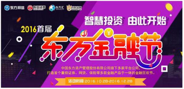 据了解,中国东方资产管理股份有限公司(以下简称“中国东方”)旗下综合性互联网金融平台东方汇联合东方邦信融通控股股份有限公司(以下简称“东方邦信”)、东兴证券、万联金网等机构,联手举办“2016首届东方金融节”已于10月28日正式拉开帷幕。