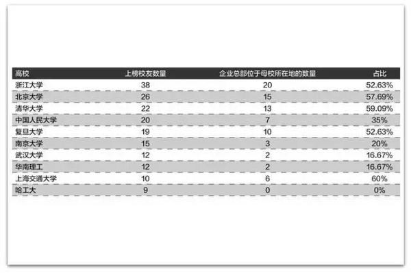 上榜的清华校友中,有2家企业的总部在深圳,1家企业的总部在杭州,但没有1个在广州的;