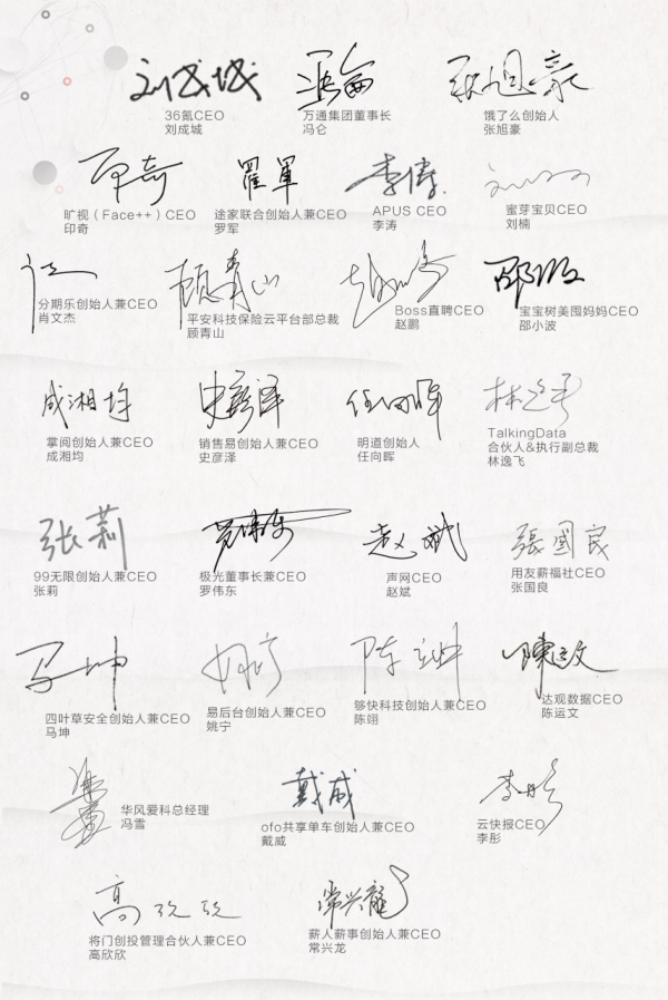 也因此,此时此刻,36氪作为一家有责任和担当的媒体,应该帮助真正的创业者发出自己的声音。我们邀请每一个与我们感同身受的创业者,每一位在寒冬中乐观前行,在盛夏时明见万里的创业者,在这份宣言下方郑重签下自己的名字: