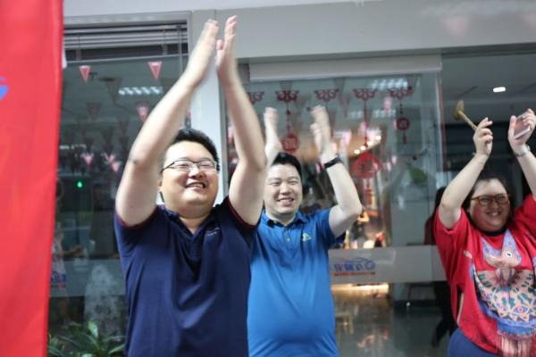 车置宝创始人兼CEO黄乐在为员工打气加油