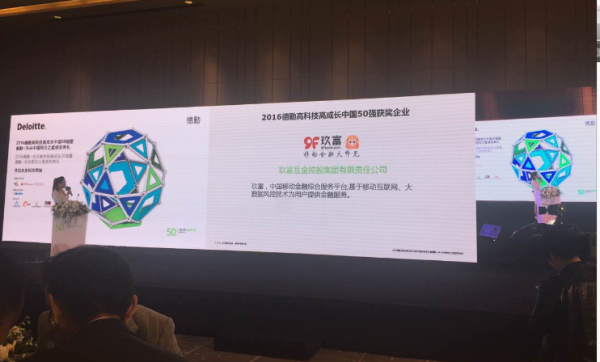 11月16日,2016德勤高科技高成长中国50强颁奖典礼在武汉举行,同时还发布了《2016德勤高科技高成长中国50强报告》。玖富高级副总裁、首席财务官林彦军受邀出席颁奖礼,并与主办方一同参加了媒体发布会。凭借708%的高速增长,玖富集团再次入围榜单,也成为近年来唯一一家连续两年上榜的金融科技类企业。