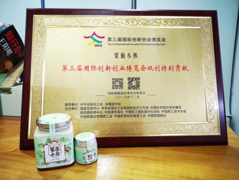 第三届(2018)国际创新创业博览会12月16日成功闭幕。为期3天的创博会让各大参展企业收获丰硕的成果。蒙面小熊品牌也有幸荣获第三届国际创新创业博览会双创特别贡献奖。作为年轻的创业品牌,蒙面小熊,任重道远。在鱼珠混杂的国内蜂蜜市场环境下,希望蒙面小熊可以坚守品质,早日成为纯天然健康食品的领先品牌和超级IP,用自己提倡的健康生活方式影响更多人。