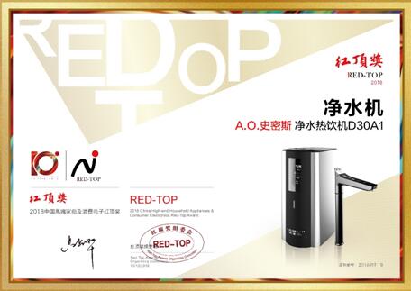 在本年度的评选中,凭借着卓越的产品创新能力以及对中国高端家电发展趋势的精准洞悉,A.O.史密斯两款创新精品:净水热饮机和甲醛净化器,荣获家电行业至高荣誉——"红顶奖"。